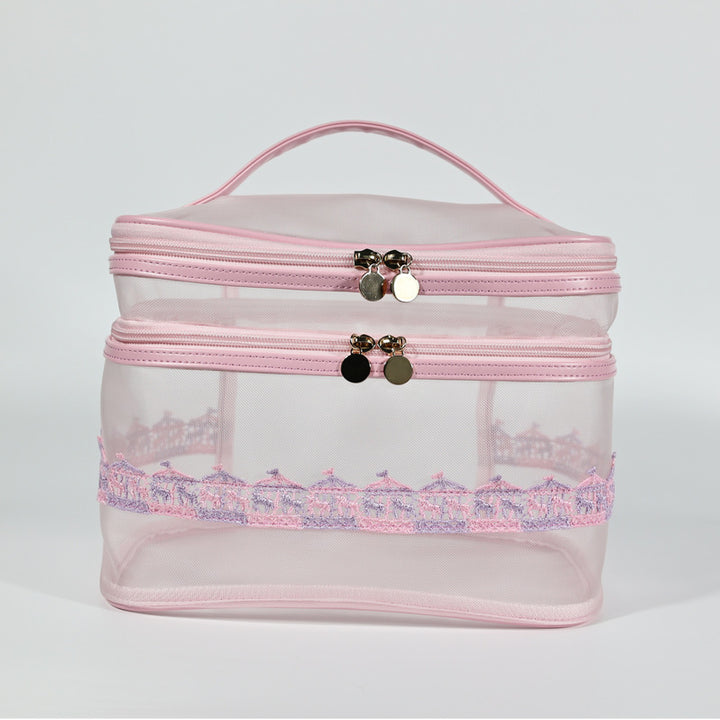 - DIADIA custom mesh Clear Toiletry Bag, Transparent Travel Toiletries Organizer, Large Opening Cute Travel Makeup Bag, Portable Large Capacity Travel Essentials for Women (pink))